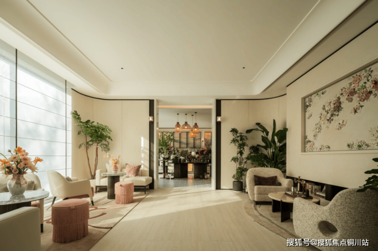 商务会客、瑜伽冥想、花艺空间、健身房等多功能融合式空间,缤纷的色彩搭配、明亮的灯光、万花筒一样的软装,通过整体合理、有规划的布局,营造出不同场景,让业主有主动去锻炼、去阅读、去静坐、去交流的欲望。