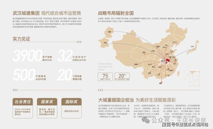 武汉城建集团,武汉市属的重点国企,中国企业500强,资产规模超3900亿元,致力于通过“3+4+X”现代化产业体系,赋能城市活力和城市品质提升。武汉城建立足武汉,布局全省、辐射全国、面向世界,业务领域遍及全国20多个省市及全球多个地区,创造了300余次“广厦奖”等国家级奖项获得,国际奖项20余项。2018年首入浙江,深耕浙江中芯都市圈7载,打造奥璟园(绍兴)、云起府(宁波)、江山云起(义乌) 等标杆作品,2023年择址绣湖,以奢宅钜著致敬义乌。