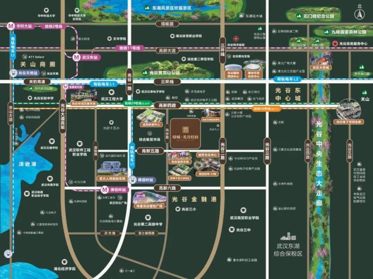 从区域来看,绿城·光谷桂府正处于光谷的金融港板块,是“千亿大道”关山大道的“后花园”,是产业人口密集、居住需求旺盛、人口活力巨大的板块。