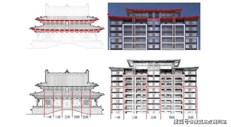 同时,景玥府还将现代中式风格建筑提升到了更高的境界,提取世遗大运河畔红梅公园内红梅阁建筑元素,打造「双重檐」屋顶制式、「五开间」立面造型。