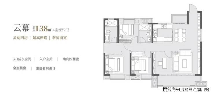 再比如这个建面约138㎡户型。改善户型中最易“撞衫”的面积段,项目创新性地打造成百变三/四房,无论是二胎家庭还是三代同堂,满足业主全生命周期的空间需求。