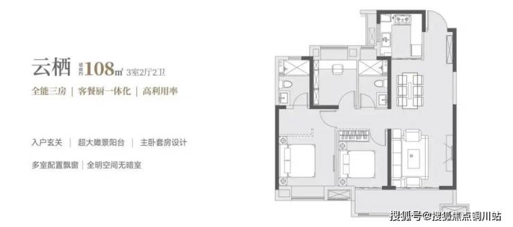 建面约108㎡户型,虽是首置面积段,但呈现出来的空间同样能实现“品质越级”。