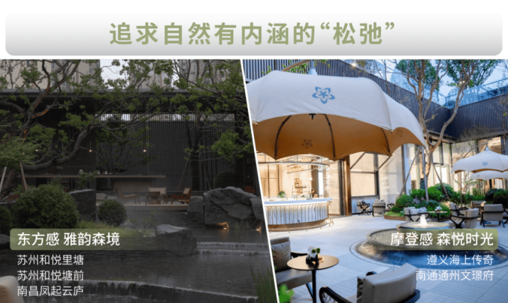 基于对审美趋势及客户偏好的洞察,旭辉建管结合中国传统园林手法及西方自然主义园林特点,在「和悦系」和「瑧悦系」两条产品线中,沉淀出两种各具特色、又一脉相承的景观审美风格:强调东方感的“雅韵森境”、强调摩登感的“森悦时光”,不同的风格匹配不同的项目定位及客户需求,也陆续在多个城市,呈现出两种景观风格的代表产品。