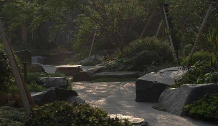 我们通过树木、花草、置石、叠水等丰富的自然元素组合,充分还原生态的自然景观,让人们能够在社区里就能亲近自然,舒缓压力。
