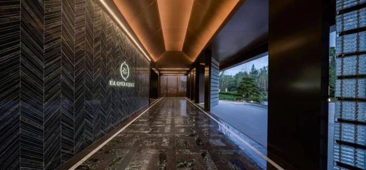 一座桥、一片林、一条路,指引归家的方向,踏桥穿林,镜水叠影,迎松而立,见此即归家,展现在客户眼前的,是尊贵雅致的归家大堂,燕归挑檐、绿色奢石墙、镜光玻璃砖、瑰丽金属线条,展开富丽堂皇的迎宾画幅,归属感和自豪感油然而生。