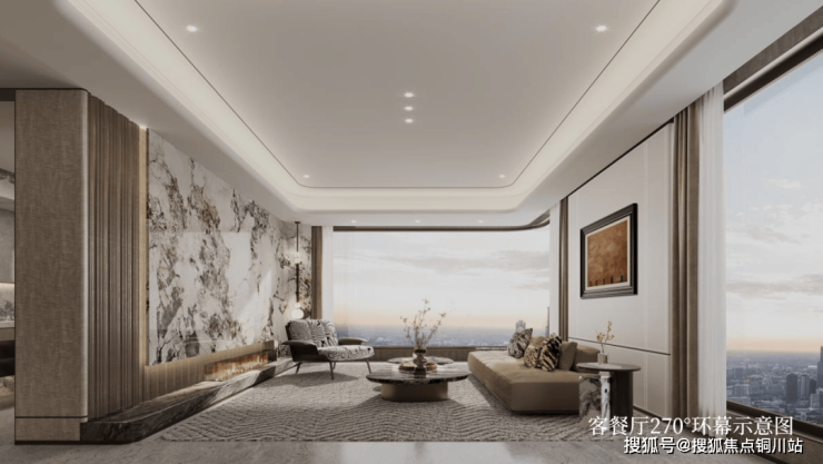 考虑到居住观景效果和极致采光需求,项目创新打造“270°环幕观景视野”,更大采光面之余,让城市盛景如长画卷般印入未来居住的每一处。