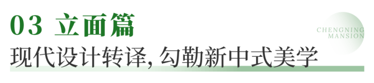 立面设计以宋式美学的传承性为基,高度抽象了新中式建筑中的屋檐、廊柱等代表性符号,取其形式和意向,用现代设计语言和材料进行转译,提炼为立面设计的一系列设计语言。