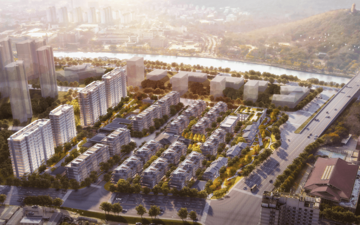 沿运河畔,建筑错落有致生长,宛如从山体中自然延伸而出。8条视觉通廊将惠山轮廓、运河波光、城市地标纳入窗景,实现“推窗见山、开门入画”。这不是在建造社区,而是在山水间编织生活。