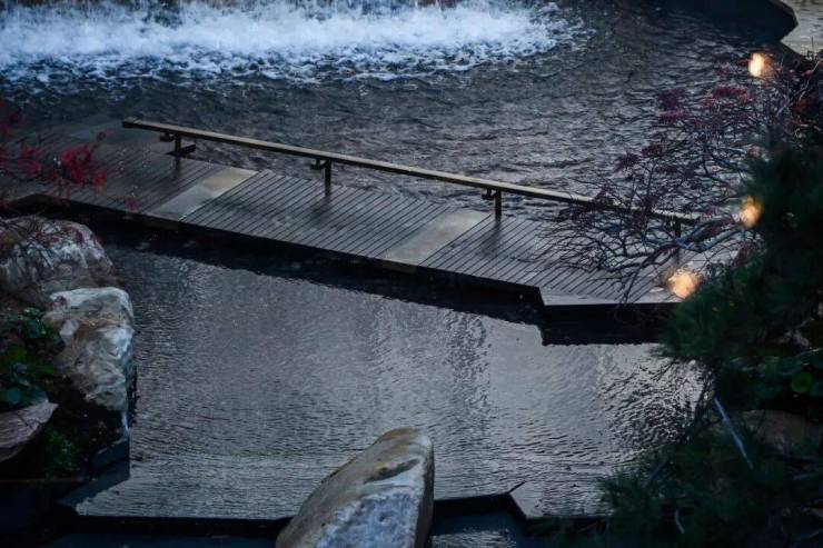 水无常形,园因水生。项目传承寄畅园“大水宜分、小水宜聚”的理水手法,通过地形、桥梁、置石的巧妙布局分割水面, 或缓流小溪 ,或静谧汪泉,展现出动静结合的美感,让空间愈发灵动,赋予“移步换景”的游园体验。