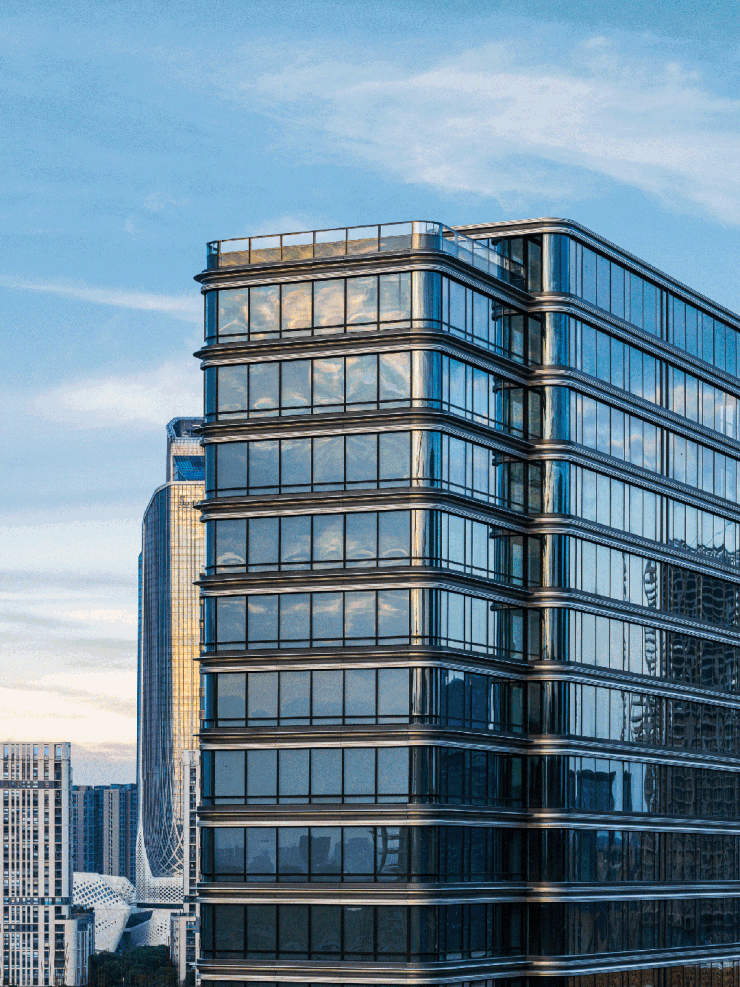 为了不辜负河西青奥滨江天际线的纵深之美,长江之歌用连贯规整的公建化立面来营造“地标感”,借平推窗技术打造四面统一的玻璃幕墙风格外立面,不造作,不堆砌,更显轻盈和质感。