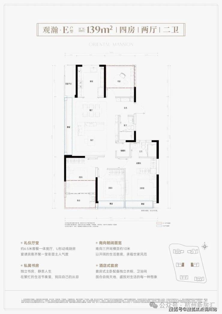 鸣澜里139平户型同样做的不错,打造四房两厅两卫,分为横竖两款,全部为边套,两梯两户设计。其中,139平竖厅户型亮点分析:①户型得房率超高,达到约93%;② 南向3个卧室,采光优且满足二胎家庭和三代同堂居住需求;③ 客厅面积达到约37平,足够大,同时额外配置约2.6平的储物间。