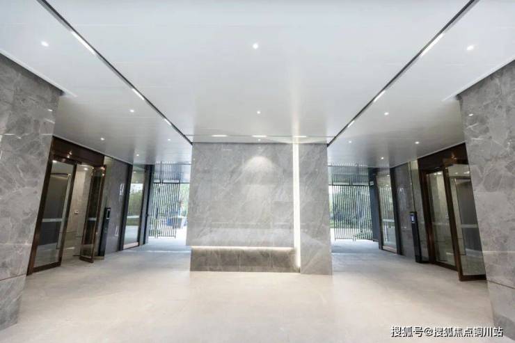 拐过草坪来到单元门,轻奢入户大堂,石材背景墙镶嵌金属线条,大气尊崇感扑面而来。