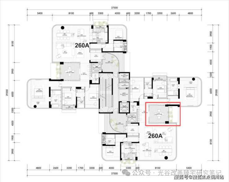 很巧猜对了,万科最终的168户型整体格局和仁和春天260平户型格局基本类似,都做到了四面采光,多个全景舱。