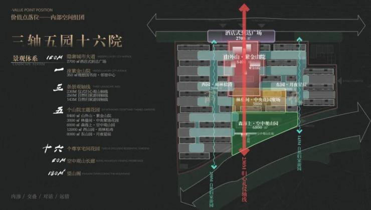 继续前行,步履流转。在中北和金基的执笔下,紫金山被形意兼顾地融入内部园林景观,五大核心景观更是点睛之笔。
