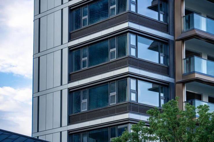就拿建筑立面来说,建发·玺云的建筑立面横向依托大面玻璃,最大做到约270°超广角环幕窗面,极显格调。