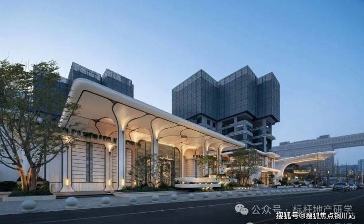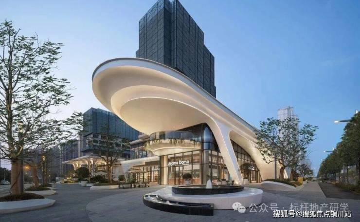城市广场、空中花园、立体绿植都作为设计语言植入沿街空间中,建筑以具有昭示性的「曲面屏+大悬挑」,“光的曲线”柔化传统直角幕墙的边框,“谷的形态“创造了层层叠绿的立体空间,打造一座向上生长的悬浮岛屿,强化自然生境的沉浸体验。