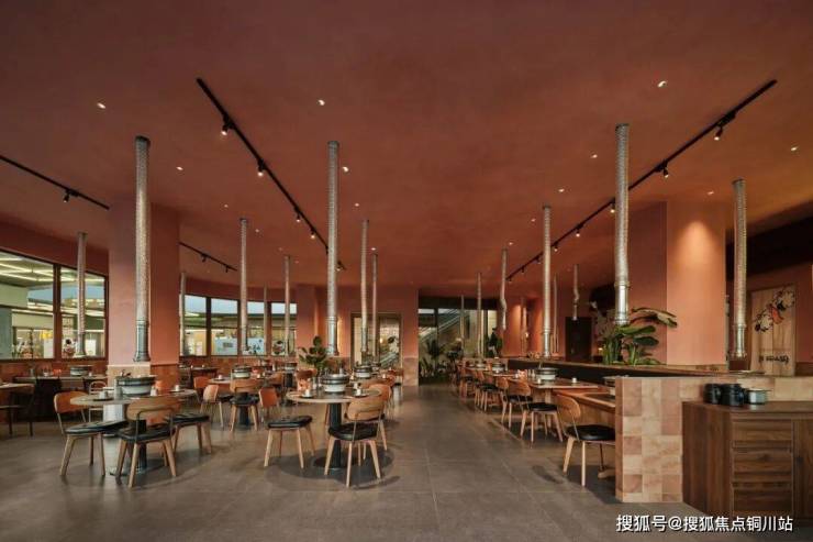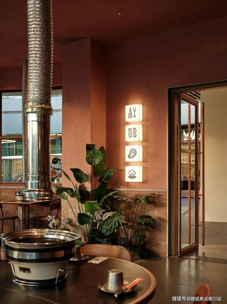 暖调砖红奠定空间基调,金属烟管牵引升腾的锅气。烤肉的香气与火焰的温度在空间中交织,每一角落都为故事的发生预留可能,也呼应着聚集与交流的社交属性。夜幕降临,暖光溢向街道,映照城市夜色,仿佛一场关于美食与生活的邀请,拉开整场体验的序幕。