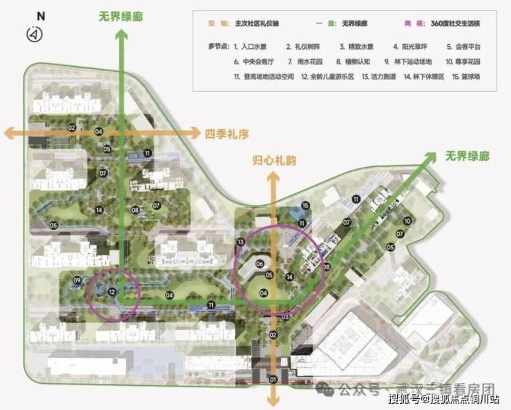 🌳两核多节点:活力运动与森居休闲相结合,打造林下森居、雨水花园、晴翠花园、童话岛屿、动力空间等生活场景。