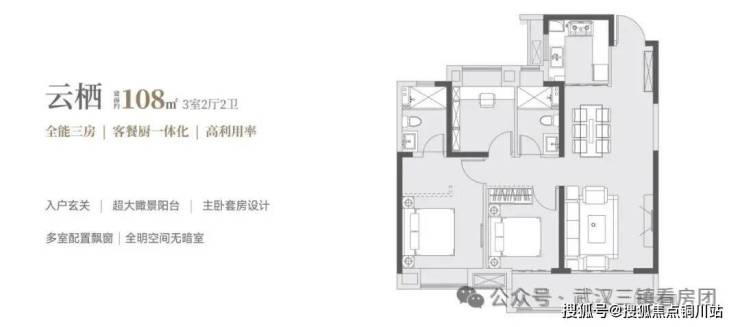 约108㎡【3房2厅2卫】双卫设计,高利用率,空间更阔绰