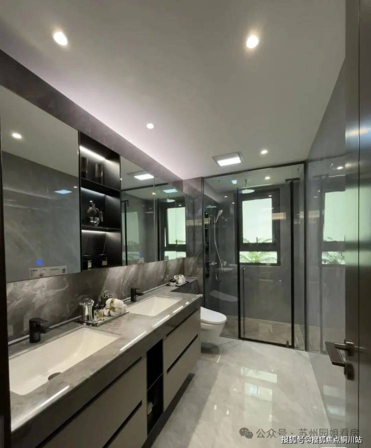 卫生间交付带美妆冰箱、金属壁龛,马桶是德国唯宝智能马桶。