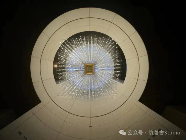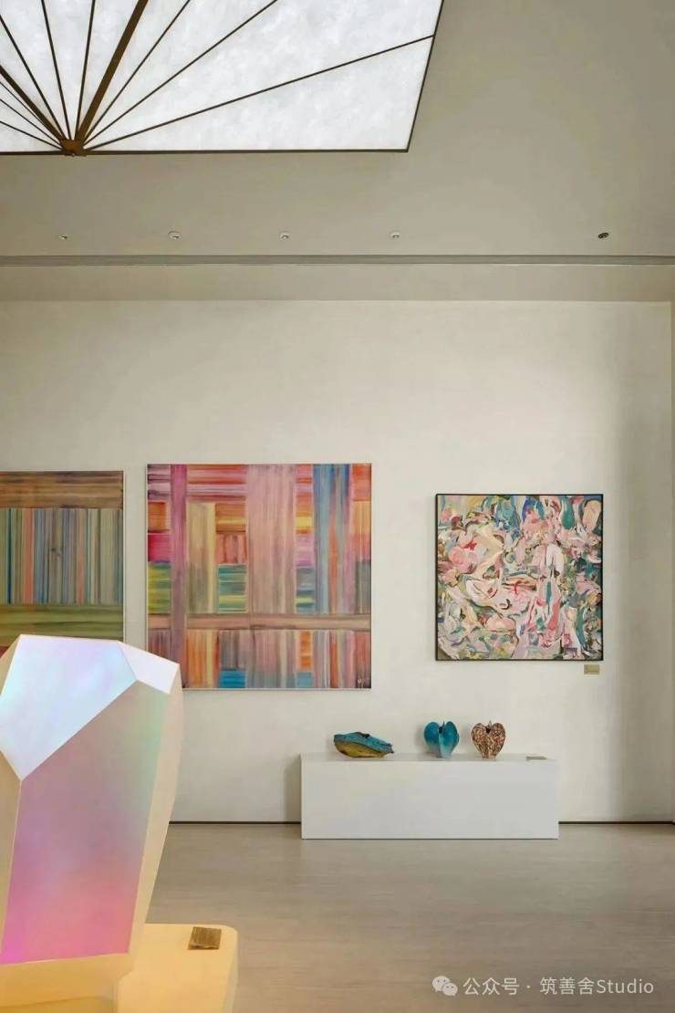 在主体建筑北侧正面的入口处,精心设计的艺术楼梯与独特的艺术装置相得益彰,成为空间的灵魂所在。艺术楼梯不仅展示了其独特的艺术魅力,更通过与天窗自然光线的巧妙配合,为空间注入了深刻的感悟与艺术的氛围,增强了场所的视觉冲击力。这一区域不仅是行走的必经之地,更是行程中的亮点,艺术装置与自然光线的融合,为游客的游览路径增添了层次丰富的感官体验。