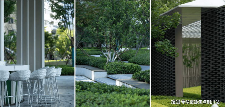 北区大门的景观也被修葺一新,廊架下空间从原先较为单调场域蜕变为艺术景观花境。甄选优质植株全冠移植,通过高低错落的植株搭配,形成自然有序的艺术景观。以景观优化北区大门的休闲空间,于此一步一景,舒享生活的惬意。