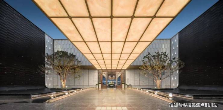 奢阔地标门厅,总长约88米、苏州首座大尺度流光造型宝顶及铂金长屏地标门厅。
