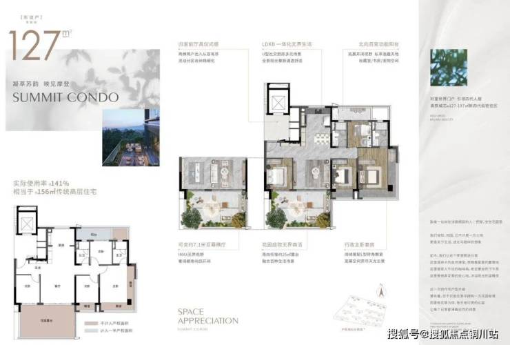例如建面约127㎡:可变约7.1m巨幕横厅,实际使用面积相当于传统住宅156㎡传统高层住宅。