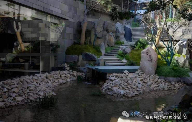 在园林景观设计上,深入挖掘苏州本土文化精髓,秉持“以水为脉、理水造园”的核心理念,精心构筑充满水乡韵味的景观序列。下沉庭院,一方隔绝尘嚣的静谧秘境,融汇苏州园林的雅致神韵,以收放自如的空间布局,构筑出步移景异的游园雅趣。虬枝松树尽显风骨,错落景石沉淀岁月,于静默中诉说时光故事。循径而下,绿意葱茏,光影斑驳,清泉潺潺,于自然怀抱中邂逅一份宁静悠然。