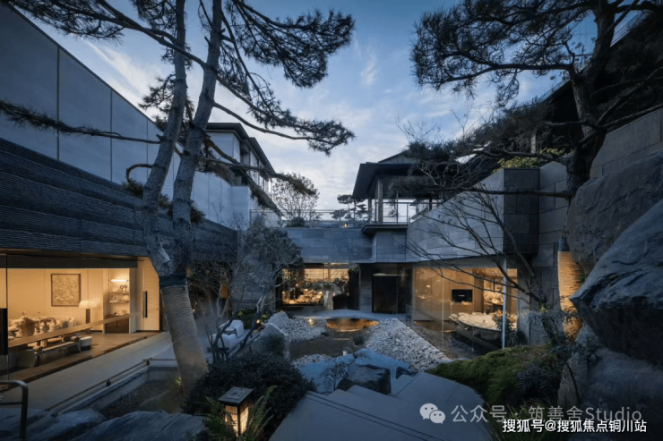 借鉴了名园造园的手法,将江南园林中的庭、廊、桥、坡、台都搬了进来。清溪绕石潺潺流,漾开一池清幽。琼台赏月,浅椅两张,圆几一张,静待君坐。闲坐于此,清风拂过,带来草木清香,听水声潺潺,赏景致怡人,心在此间寻得悠然安宁。