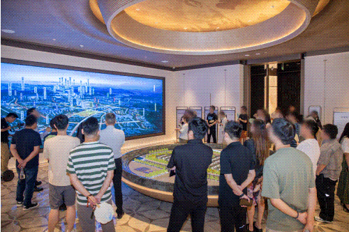 大家或驻足中央水院旁的禅意景亭,感受“天圆地方”之境,或凝望天光云影倒映在约180㎡的“镜湖”之上,不自觉地放慢了脚步,或与家人朋友探讨未来的院墅生活,脸上满是向往之情。