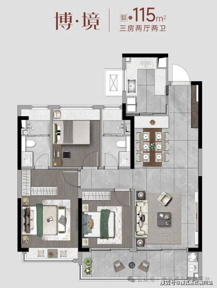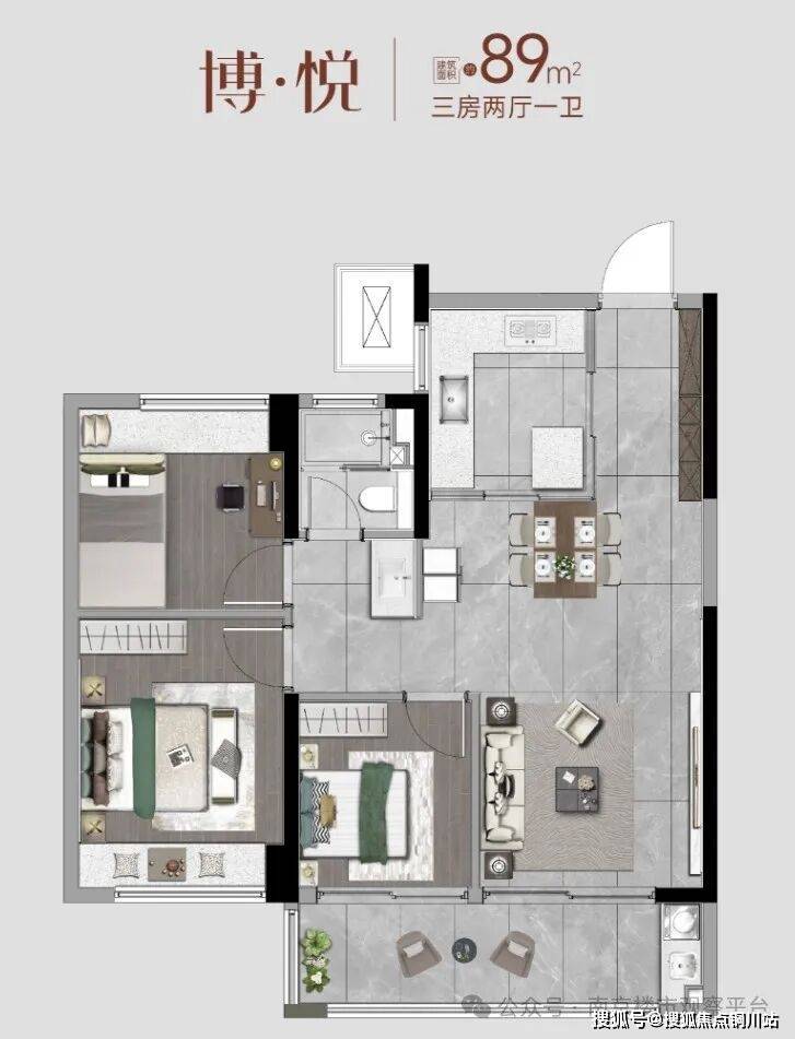 餐客厅面积约22.8平,较普通89户型提升近20%