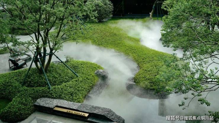 璟樾府的实景园区,重现宝格丽经典,将自然元素融入整个园林体系。