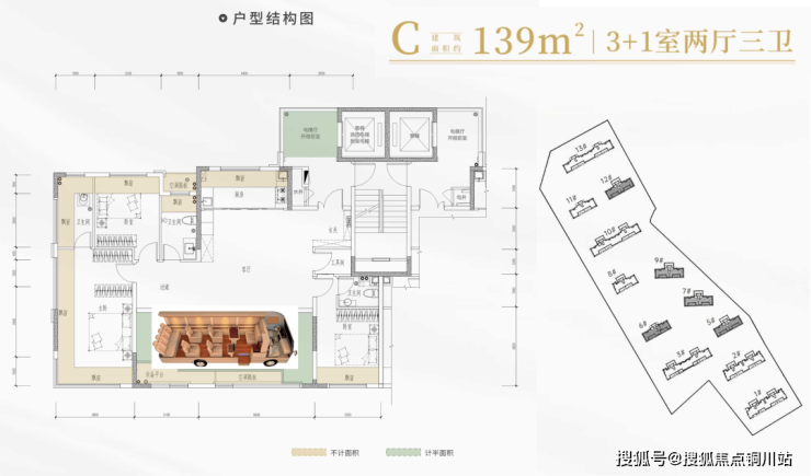 最后看建面约139平户型: