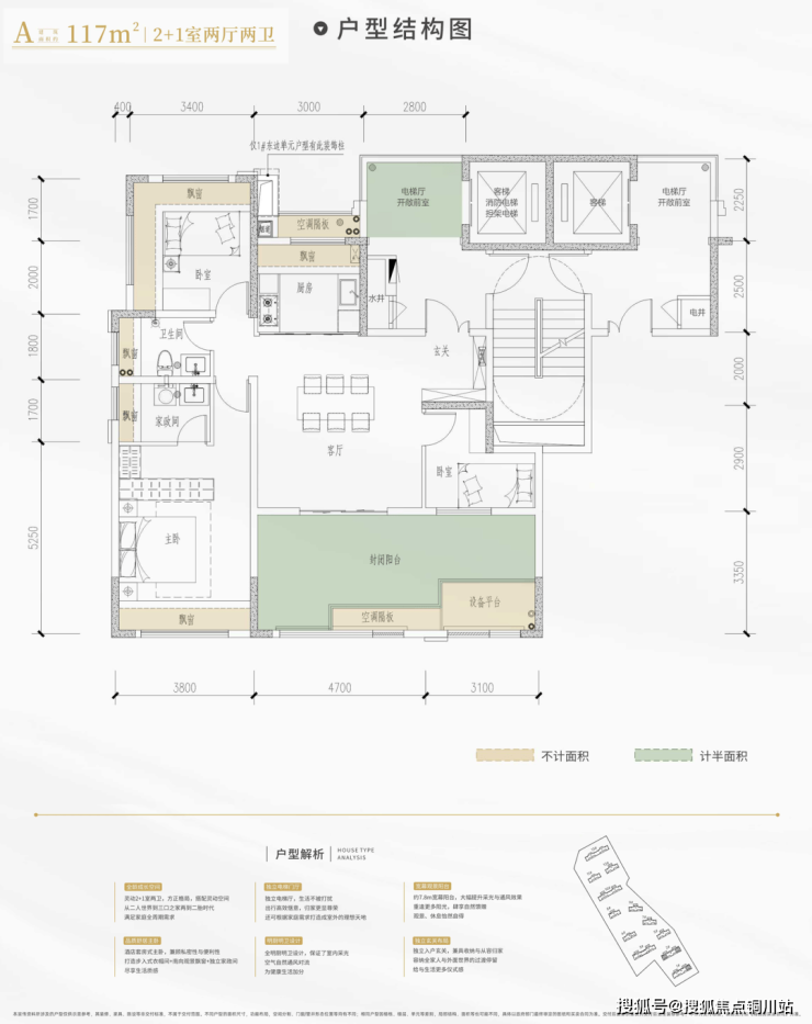 招商揽阅大敢尝试,率先做出了赠送面积暴高的117平户型。