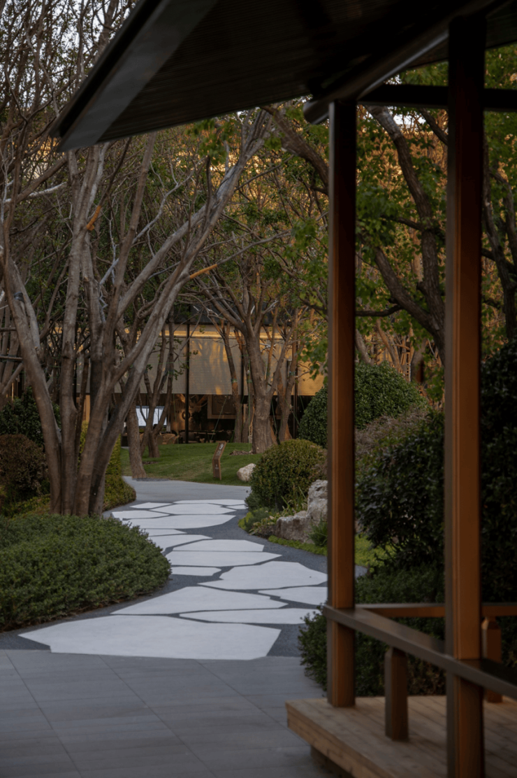 近几年来东方禅意的风格大行其道,但如何透过流行的表象模式,找寻到东方美学真正的内在气息,是我们一直追寻的目标。东方意境的山水庭院从来都不应是东方元素的模块化组合,抑或叠山理水高墙大院的泥古抄写。身处都市之中,一方面需要解决场地与城市的关系梳理,一方面要营造内里乾坤,做到真正意义上相地合宜,量体裁衣。