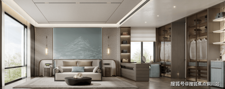 以面积约240㎡的下叠为例,一层做到了双开间大横厅设计,二层3开间朝南,结合了别墅和大平层的优点,相当于一个折叠的大平层,通透性和采光都遥遥领先传统墅类。
