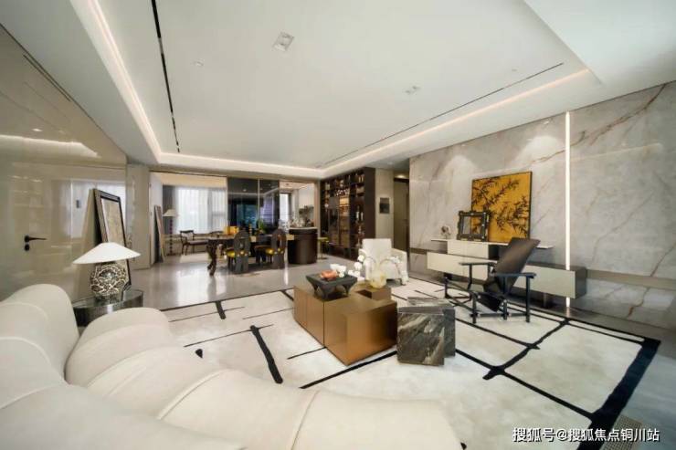 众所周知,装修一套房子,往往设计是最重要,也是最费钱的一个环节。来保利博雅和著“抄作业”,直接给你省下大几十万。 大方厅开间约5.4米,客厅和餐厅都拥有独立空间,不像一些产品,为了打造横厅空间,会将客餐厅空间放在一起。但从实际居住角度出发,客餐厅独立更合理,也更舒适。 客厅大块地砖连纹通铺,搭配金属踢脚线与大片的木饰面背景墙,电视背景墙选用岩板搭配拉丝枪灰色金属,美观且实用。