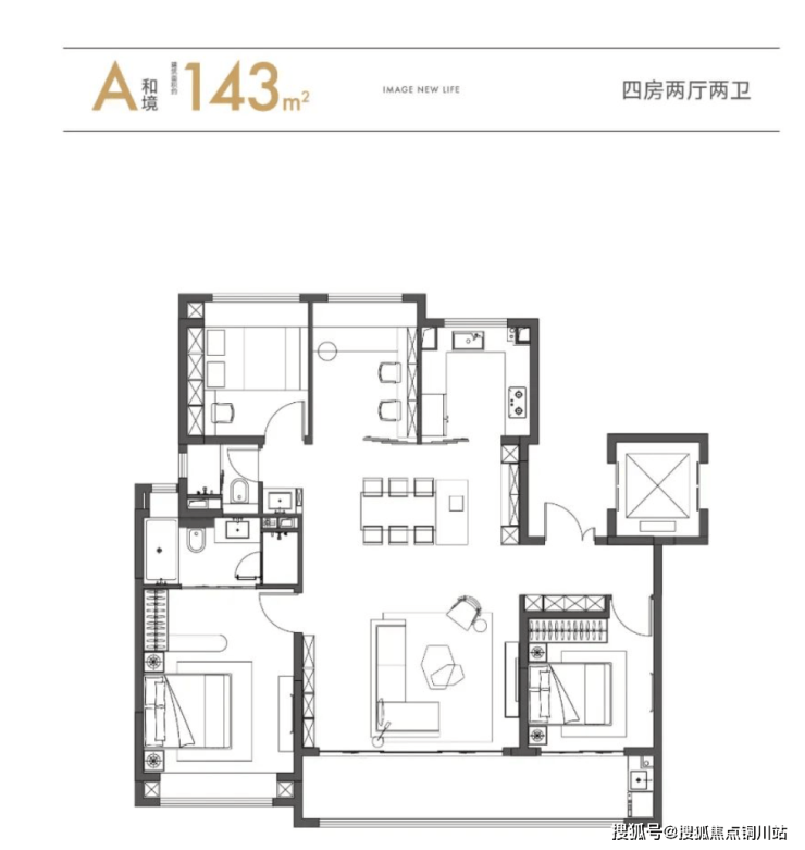 先看户型:一梯双开,让每户门前都拥有独立的入户空间四房两卫方正格局,主卧套房设计,主卫还带浴缸约5.4米客厅开间,奢阔方厅面积超40㎡南向约8.6米双联落地窗阳台将大面采光引入室内南向的两间卧室分别位于东西两侧,互不干扰,居住私密安静。