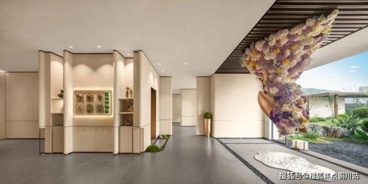 穿过归家大堂,入眼的便是大片的镜面摩登水院,涌泉叠水,高低错落、动静相宜。