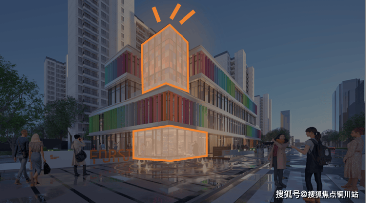 示范区位于基地东北角,因多因素限制,建筑以四层盒子建筑呈现。设计团队开始思考:如何塑造一个丰富有趣,具有时代新青年精神的“社区盒子”。满足作为社区昭示性精神堡垒的同时,兼顾与城市的融合共生,打造青年新贵专属社区商业。