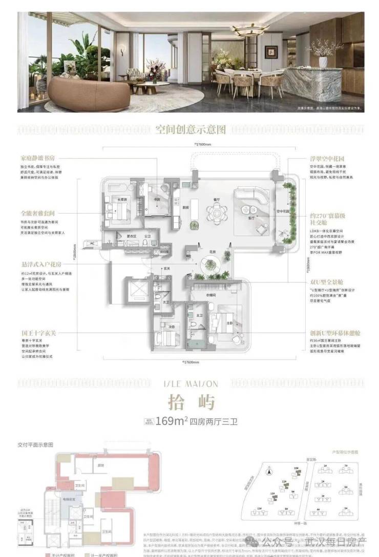 其中,建面约169㎡的户型做了大横厅+全景舱+空中花园设计,尺度非常阔绰。