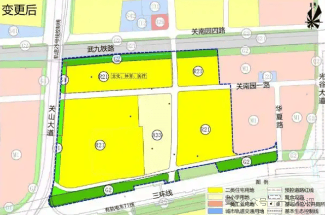 该项目即P(2025)180号地块,位于东湖新技术开发区武九铁路以南、关南园一路以东地块,紧临华夏理工学院。该地块也是光谷“工改住”地块,原本是一类工业用地,跟着华夏理工学院片整体调规成了住宅用地。
