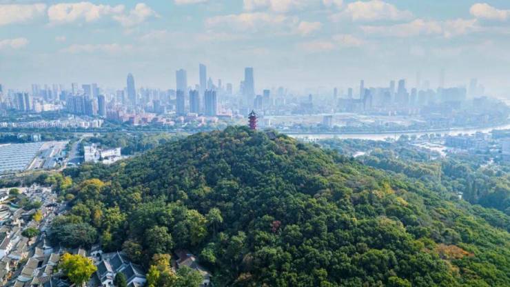 借山引势,取景中轴之上对望龙光塔;