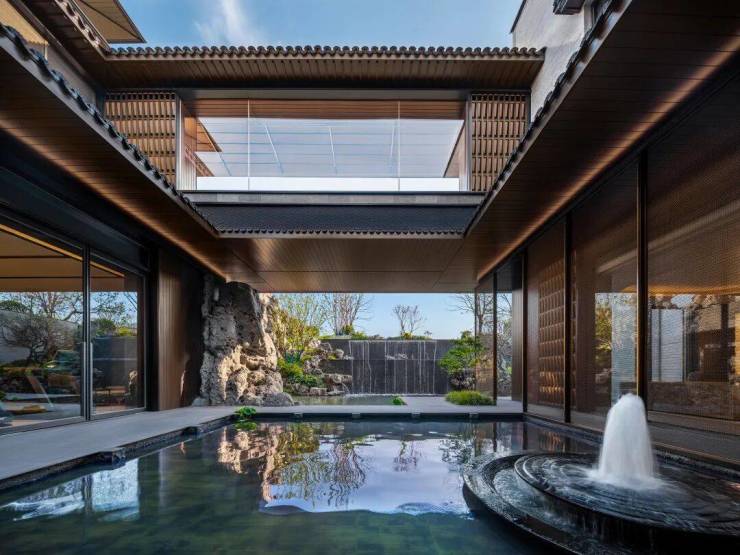 行至水流声处,三进「漪澜堂」豁然映入眼帘,涵盖一座下沉式庭院和雅集会所。