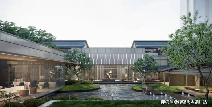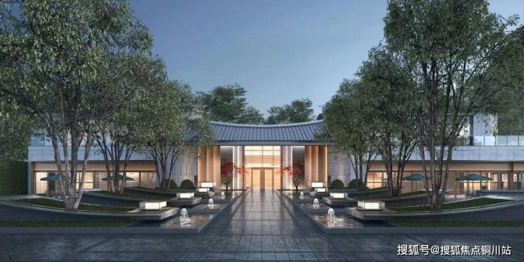 六株阵列朴树矗立于抽汲传统飞檐元素设计的台池,足以可见项目的尊崇华贵。