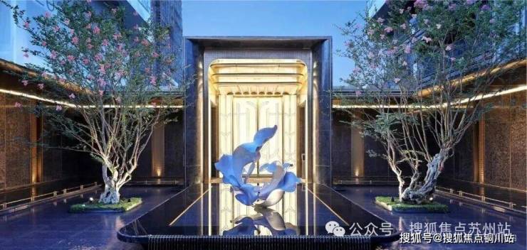 奢贵门庭,定制6瓣百合花雕塑以华贵之姿立于园中;地上归家大堂,百合花艺阵列呈现层叠绽放姿态;地下光厅,融合在地文化及国际酒店设计理念,打造专属归家尊仪。