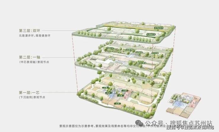 “立体景观芯”,下沉庭院复合型功能空间,非平面铺陈,目之所及皆是立体画境。