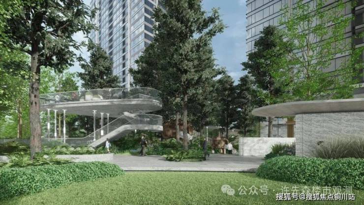 B2地块园林景观由翊象设计操刀,以“谧居、云梦泽”为主题,对标纽约MOMA广场,以当代艺术馆为基底,定制艺术雕塑,汲取浑然天成的自然禀赋,打造艺术、自然、静谧的园区景观。B2落地长江中心项目最大的儿童玩乐空间,落地达尔文营地,为孩子提供自然认知、自然探索的环境。