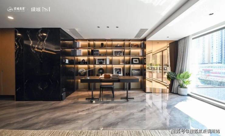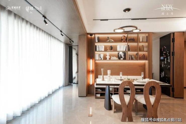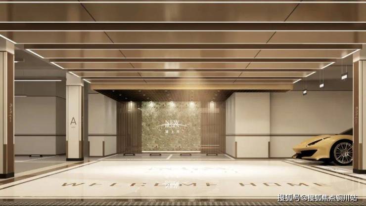 智能高级感美学地库,回形灯带与铝板阵列交相辉映;顶部logo投影灯设计,并采用亚马逊绿岩板设计玄关墙,营造温馨而现代的归家体验。